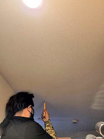 天井にまずLED照明用のスペースを設け、その後 照明設置用の電気工事を行います。