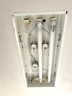 蛍光灯を中心にLED照明への交換や配線工事を行いました。